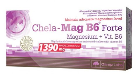 Olimp Chela-Mag B6 forte препарат превосходного качества, восполняющий недостатки магния, награжденный золотой медалью ALBION, Olimp Chela-Mag B6 forte исключительный продукт, содержащий самую легко усвояемую форму магния: аминокислотный хелат(бис- глицинат магния) в увеличенной дозировке- 1390 мг хелата магния в одной капсуле MEGA CAPS Дополнительно препарат обогащен витамином B6, который совместно с магнием принимает участие в метаболических процессах и усиливает действие. Olimp Chela-Mag B6 forte помогает удовлетворить потребность в магнии- элементе, необходимом при интенсивной силовой нагрузке, участвующем в энергетических процессах, пост- тренировочной регенерации, увеличивающим также сопротивляемость стрессу. Olimp Chela-Mag B6 forte повышает адаптационные способности организма, обладает успокоительным действием, нормализует сон, не оказывая при этом снотворного эффекта.